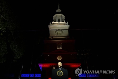 바이든 대통령은 지난 1일 펜실베이니아 필라델피아를 찾아 독립기념관 앞에서 '나라의 혼을 위해 계속되는 전쟁'을 주제로 연설을 했다.