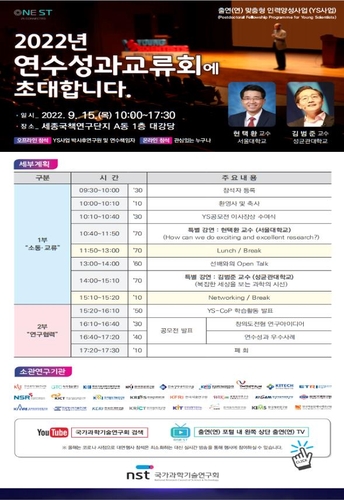 교류회는 NST 유튜브 채널(www.youtube.com/c/국가과학기술연구회) 또는 출연연 포털(www.portal.re.kr)의 '출연연TV'로 생중계된다.
