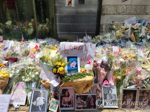 지난 8일(현지시간) 서거한 엘리자베스 2세 영국 여왕을 추모하기 위해 꽃다발을 들고 온 그는 길게 늘어선 조문객 줄에 합류하는 것은 포기하고 대신 영사관 앞 기둥에 꽃을 꽂았다.