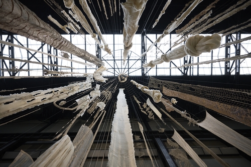 비쿠냐는 여러 형태와 색상으로 매듭지어진 끈을 이용해 고대 안데스 지역 언어 체계인 키푸와 토착 역사와 문화를 조명한다. 터바인 홀 천장 양 끝에 설치한 길이 27m 조형물이 대표 작품이다.