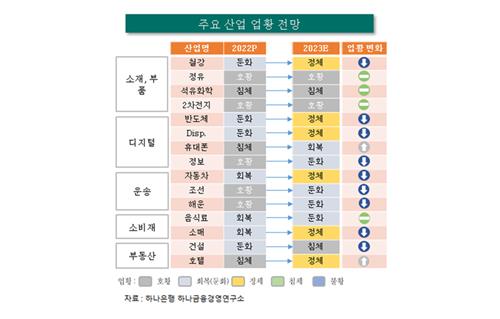 하나은행 하나금융경영연구소는 20일 '2023년 산업전망' 보고서를 발간하고 이같이 밝혔다.