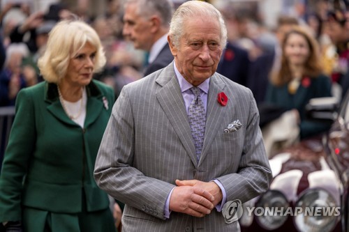 (런던=연합뉴스) 최윤정 특파원 = 영국 찰스 3세 국왕이 9일(현지시간) 지역 방문 중 한 20대 남성이 던진 계란을 맞을 뻔했다.
