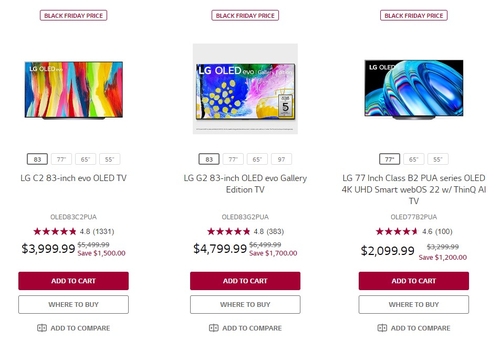 LG전자 미국 홈페이지를 기준으로 LG 올레드 TV는 모델 및 크기에 따라 기존보다 300∼1천700달러 할인한 가격에 판매 중이다.