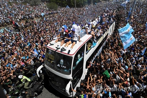 아르헨티나 대표팀은 이날 오전 11시 45분께 부에노스아이레스 외곽 아르헨티나 축구협회에서 우승 기념 축하 카퍼레이드를 시작하고서 5시간 가까이 거북이걸음을 이어가야 했다.