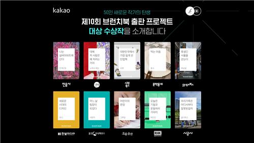 (서울=연합뉴스) 임성호 기자 = 카카오[035720]의 콘텐츠 퍼블리싱(출판) 플랫폼 브런치는 21일 '제10회 브런치북 출판 프로젝트' 수상작 대상 10편과 특별상 40편을 발표했다.