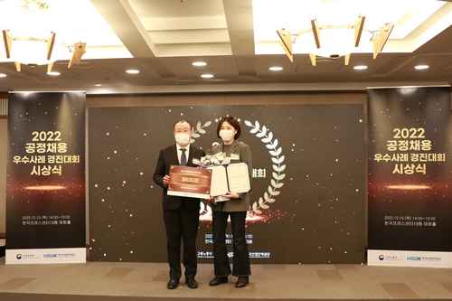 ▲ 인적자원 기술 기업 원티드랩[376980]은 '2022년 공정채용 우수사례 경진대회'에서 한국산업인력공단 이사장상을 받았다고 21일 밝혔다. 원티드랩은 채용 소요 시간을 단축하면서도 지원자들의 역량을 효과적으로 판단할 수 있는 여러 전형을 시도하고 있는 점을 수상 이유로 꼽았다. (서울=연합뉴스) (끝)