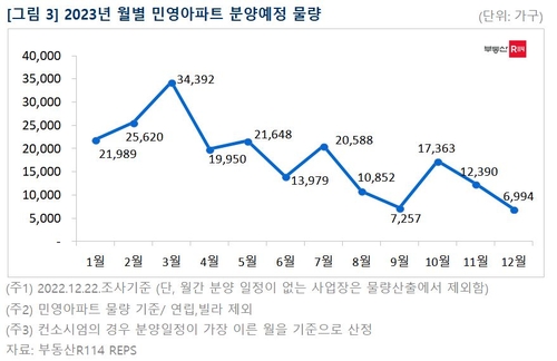 이처럼 내년 초 분양 예정 물량이 집중된 것은 올해 초부터 급변한 시장 상황에 적절한 분양 시점을 기다리던 건설사들이 연내 분양을 마치지 못한 물량을 내년으로 넘긴 영향으로 풀이된다.