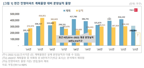 분양 시점과 지역이 확정되지 않은 5만여 가구를 제외한 물량으로, 이를 포함하더라도 계획물량 기준 올해(41만6천142가구) 대비 38% 줄어든 수준이자 2014년(20만5천327가구) 이후 가장 적은 수치다.
