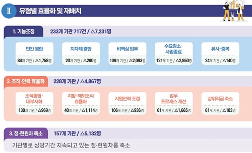 감축 분야는 크게 기능조정(7천231명)과 조직·인력 효율화(4천867명), 정·현원차 축소(5천132명)다.