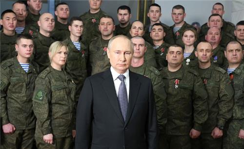 (서울=연합뉴스) 유한주 기자 = 블라디미르 푸틴 러시아 대통령이 새해를 맞아 우크라이나 침공의 명분을 다시 강조하고 승리를 다짐했다.