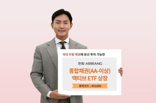 ▲ 한화자산운용이 국고채·통안채·회사채 등 AA-등급 이상 국내 우량채권에 분산투자하는 상장지수펀드(ETF) 상품인 'ARIRANG 종합채권(AA-이상)액티브'를 새로 상장한다고 10일 밝혔다. 이 상품은 국내 우량채권시장을 대표하는 채권 5천700여 종목을 바탕으로 구성된 'KAP 종합채권지수'를 비교지수로 삼는다. 투자위험등급은 낮은 위험 수준인 5등급이며 평균 듀레이션은 5.16년, 총 보수는 연 0.045%이다. (서울=연합뉴스)