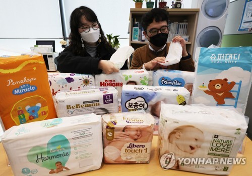 (서울=연합뉴스) 오지은 기자 = 신생아 일회용 기저귀 제품을 비교·평가한 결과 흡수성능에서 차이가 있는 것으로 나타났다. 일부 제품은 편의기능인 소변알림줄이 제대로 작동하지 않았다.