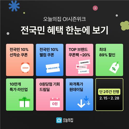 [게시판] 오늘의집, 봄맞이 10만여 개 상품 할인 판매▲ 라이프스타일 플랫폼 오늘의집은 봄을 맞아 세일 행사인 'O!(오) 시즌위크'를 오는 28일까지 진행한다고 15일 밝혔다. 가전, 가구를 비롯해 수납·정리, 생필품, 생활용품, 식품 등 총 10만여 개 상품을 최대 89% 할인 판매한다. (서울=연합뉴스)(끝)<저작권자(c) 연합뉴스, 무단 전재-재배포 금지>