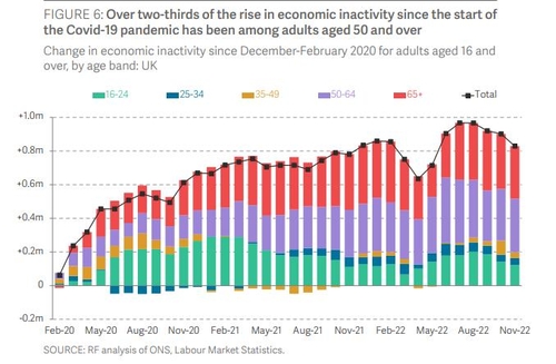 이 보고서에 따르면 코로나19를 거치면서 중장년층을 중심으로 50만명 이상이 비경제활동인구로 빠져나가 지난해 영국의 15∼64세 생산가능인구 중 경제활동참가율은 2019년보다 0.8%포인트 하락했다.
