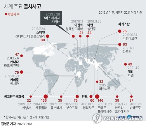 앞서 지난달 28일 자정 직전 350명을 싣고 아테네에서 테살로니키로 가던 여객열차가 테살로니키에서 라리사로 가던 화물열차와 정면으로 충돌했다.