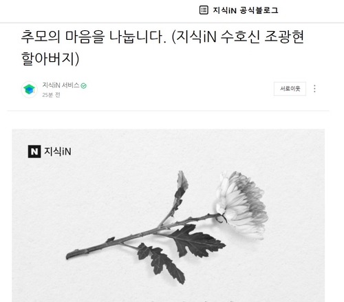 네이버는 삼성서울병원 장례식장에 마련된 조옹의 빈소에 최수연 대표 명의의 근조 화환을 보내고, 지식인 서비스 내 추모글을 게시한다고 29일 밝혔다.