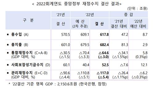 정부는 4일 국무회의에서 이런 내용을 담은 '2022회계연도 국가결산보고서'를 심의·의결했다고 밝혔다.