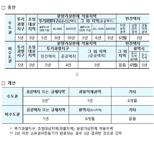 (서울=연합뉴스) 서미숙 기자 = 최장 10년이던 수도권 아파트 분양권 전매제한 기간이 오는 7일부터 최대 3년으로 단축된다.