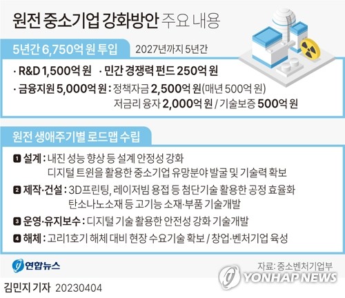 (서울=연합뉴스) 차민지 기자 = 정부가 향후 5년간 원전 중소기업의 연구개발(R&D) 및 자금 지원을 위해 6천750억원을 투입한다.