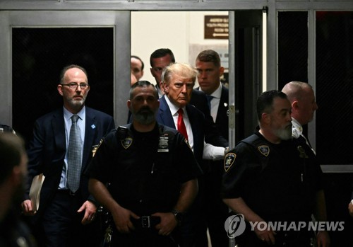 (뉴욕=연합뉴스) 고일환 특파원 = '성추문 입막음 의혹'과 관련해 장부 조작과 선거법 위반 혐의 등으로 형사 기소된 도널드 트럼프 전 미국 대통령이 법원에서 무죄를 주장했다.