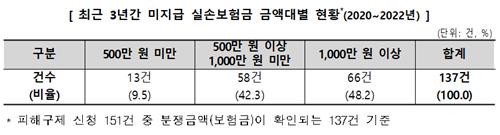 그중 92.7%(140건)는 보험사가 보험금 지급심사 기준을 강화한 지난해에 접수됐다. 2020년은 6건, 2021년은 5건에서 급증한 것이다.