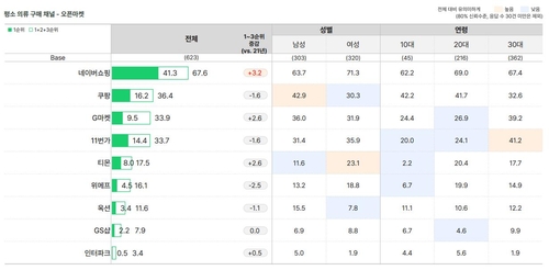 이들 10명 가운데 9명(88.2%)은 온라인 채널을 통해 의류를 구매하는 것으로 나타났다.