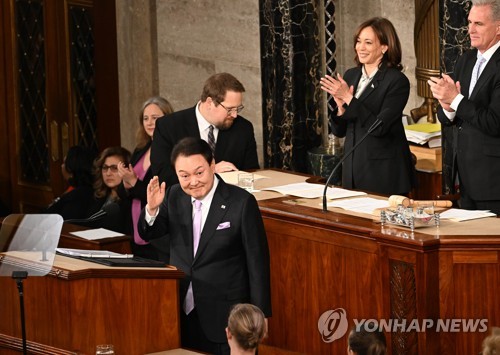 (서울=연합뉴스) 미국을 국빈 방문 중인 윤석열 대통령이 가는 곳마다 환대받고 있다. 27일(현지시간) 미국 상·하원 합동 회의 연설에서는 시종 환호와 박수가 이어졌다. 43분간 연설 중 기립박수 23번을 포함해 56번의 박수가 터졌다고 한다. 연설을 마친 윤 대통령은 의원들의 악수와 셀카 요청에 일일이 응하는 등 매너도 일품이었다. 유창한 영어 발음은 미국 대학 출신인 이승만 초대 대통령 이후 최고라는 말이 나올 정도로 인상적이었고, "BTS가 저보다 백악관을 먼저 갔지만, 여기 미국 의회에는 다행히 제가 먼저 왔다" 같은 원고에 없던 즉석 유머는 이전 대통령들에게 찾아볼 수 없었던 여유와 품격을 느끼게 했다. 우리나라 대통령의 미 의회 연설은 가장 가까이 박근혜 전 대통령에 이어 7번째이지만, 이번만큼 양국 국민들에게 깊은 인상을 심어준 것은 처음일 것이다.