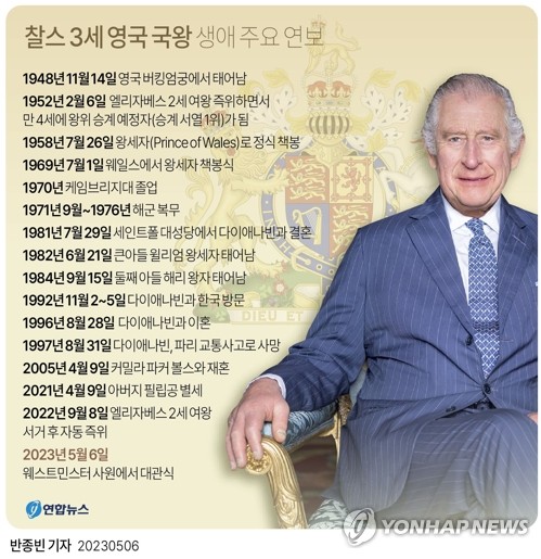 (런던=연합뉴스) 최윤정 특파원 = 영국 찰스 3세 국왕(74)은 왕세자로 거의 평생을 대기한 끝에 드디어 대관식을 치르고 왕관의 주인임을 널리 선포한다.