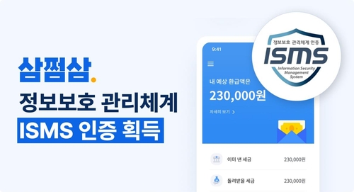(서울=연합뉴스) 홍국기 기자 = 세금 신고·환급 도움 서비스 '삼쩜삼'을 운영하는 인공지능(AI) 스타트업 자비스앤빌런즈는 한국인터넷진흥원(KISA)으로부터 '정보 보호 관리 체계'(ISMS) 인증을 획득했다고 4일 밝혔다.