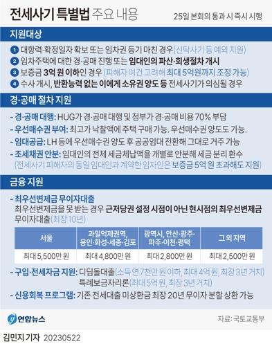 이에 따라 특별법안이 오는 25일 국회 본회의를 최종 통과하고, 국무회의 의결 등을 거쳐 공포되면 전세사기 피해자에 대한 지원이 본격화한다.