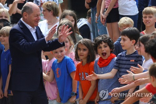 (베를린=연합뉴스) 이율 특파원 = 올라프 숄츠 독일 총리가 22일(현지시간) 독일 베를린 외곽 클라인마흐노우의 한 초등학교를 방문해 조 바이든 미국 대통령이 재선되기를 희망한다고 밝혔다고 로이터통신이 전했다.