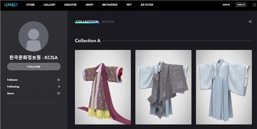 이밖에 '대취타'·'처용무' 등 전통 음악·무용에 사용되는 한복 의상 데이터 5건도 지난해 말 메타버스 의상 애셋 공유 플랫폼 '클로젯 커넥트'(CLO-SET Connect)를 통해 공개돼 약 6개월간 1천300여건의 다운로드 수를 기록했다.