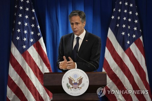 (베이징=연합뉴스) 조준형 특파원 = 토니 블링컨 미국 국무장관은 18∼19일 중국 방문 기간 중국 인사들과의 협의 과정에서 북한 문제를 제기하고, 북한의 도발을 멈추게 하기 위한 대북 영향력 행사를 촉구했다.