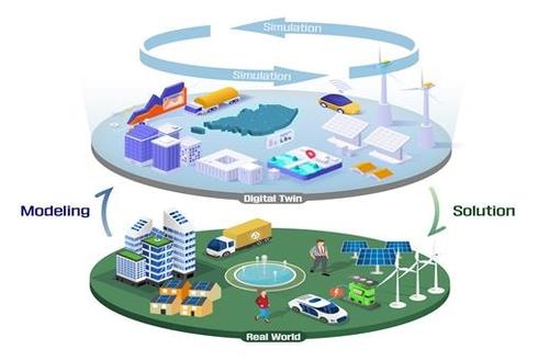 디지털트윈은 실재 사물을 가상 세계에 동일한 3차원 모델로 구현하고 시뮬레이션을 기반으로 한 분석, 예측, 최적화 등을 적용해 의사결정을 지원하는 기술이다.
