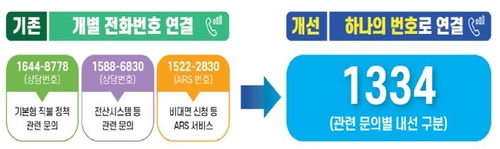 이에 따라 5일부터는 농업인이 기존의 8자리 개별번호가 아닌 '1334' 4자리 번호로 전화를 걸면 원하는 서비스를 제공받을 수 있다.
