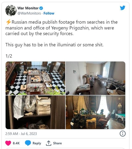 로시야1의 방송 이후 소셜미디어에선 프리고진 저택과 사무실에서 찾아낸 물품들이 담긴 사진들이 확산되기도 했다.
