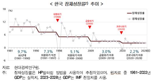 "팬데믹 이후 2028년까지 평균 잠재성장률 2.2%에 그칠 것"
