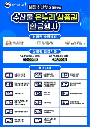 (서울=연합뉴스) 차민지 기자 = 해양수산부는 오는 6일까지 '여름 휴가철 온누리상품권 환급행사'를 연다고 3일 밝혔다.
