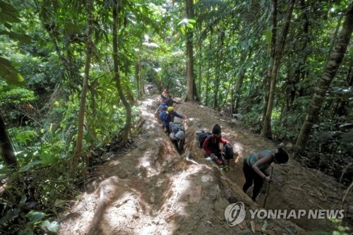 (멕시코시티=연합뉴스) 이재림 특파원 = 북미행을 꿈꾸며 남미 콜롬비아와 중미 파나마 사이 험난한 '다리엔 갭' 정글을 넘는 이민자가 사상 최대치를 기록했다.
