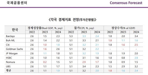 즉 투자은행들은 지난해 2.6% 성장한 한국 경제가 올해 1%대 초반 성장하는 데 이어 내년에도 잠재성장률 수준인 2%에 못 미치는 성장을 할 것으로 보고 있는 셈이다.