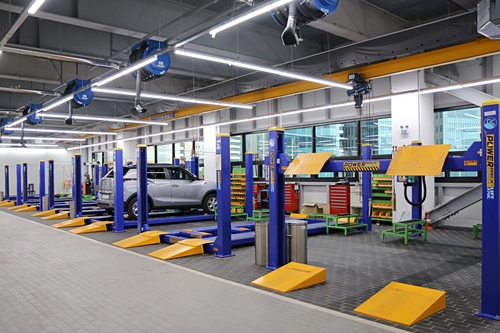 정비 작업장 전반에는 절연 강화 타일 등을 설치해 차량을 올려 정비할 수 있는 리프트인 '스톨'에서 전기차도 정비할 수 있다.