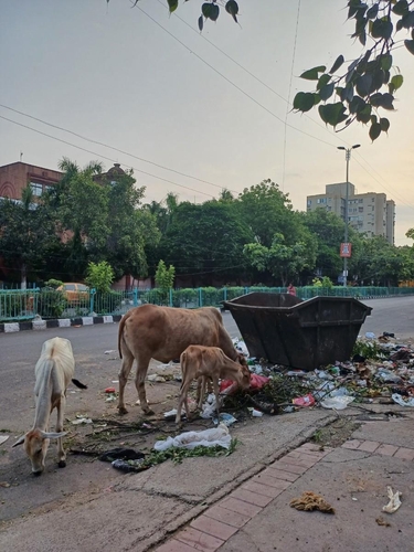 델리 도심에서 조금 벗어나는 지역에서는 거리를 떠도는 소와 개들이 음식물 쓰레기가 분리되지 않은 채 쌓여있는 쓰레기 집하장에 몰려들어 먹을거리를 찾느라 쓰레기를 헤집는 상황이 자주 목격된다.