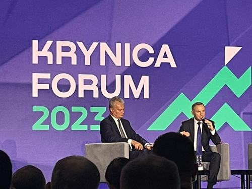 이날 개막한 크리니차 포럼 기간 14일에는 첫 한·폴란드 포럼이 열린다. 포럼에서는 방산, 원전, 우크라이나 재건 협력 등이 논의된다. 포럼에는 류진 전국경제인연합회(전경련) 회장, 정의선 현대자동차 회장 등 우리 기업 22개사가 참여한다.