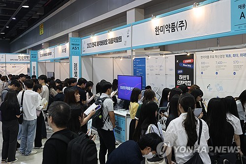 동아쏘시오홀딩스[000640], 메디톡스[086900], 종근당[185750], 유한양행[000100] 등 취업 상담 부스를 마련한 60개 기업은 구직자를 상대로 회사 직군과 채용 계획 등을 일대일로 설명했다.