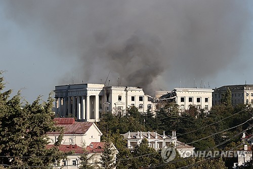 (이스탄불=연합뉴스) 조성흠 특파원 = 우크라이나가 22일(현지시간) 크림반도 세바스토폴에 위치한 러시아 흑해함대 본부를 미사일로 공격했다고 로이터, AP 통신 등이 보도했다.