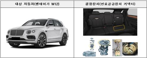 폭스바겐 벤테이가 216대는 연료공급장치 커넥터 설계 오류로 인해 장시간 사용 시 연료가 누출돼 화재 발생 가능성이 있어 오는 16일부터 시정조치에 들어간다.