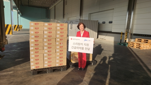 ▲ JW신약[067290]은 한국마약퇴치운동본부(KAADA)의 요청에 따라 경제 위기를 겪는 스리랑카 국민을 지원하기 위해 대한적십자에 의약품을 기부했다. 기부된 의약품은 항생제 '오마세프'와 위식도 역류질환 치료제 '라베로즈' 등 전문의약품 1만여 개다. (서울=연합뉴스) (끝)