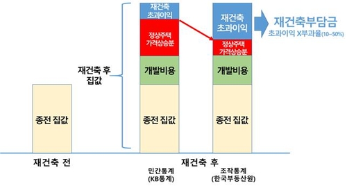 (서울=연합뉴스) 박초롱 기자 = 재건축초과이익 부담금 산출에 한국부동산원이 아닌 민간 통계를 활용하면 전체 부담금이 1조원 가까이 낮아진다는 추산 결과가 나왔다.