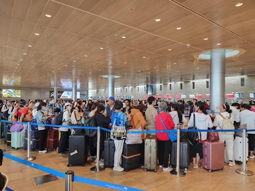 탈출 인파 행렬로 벤구리온 공항 출국장 북새통…입국장은 한산 '극명하게 대조'