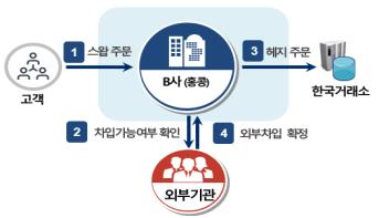 B사는 해외 기관투자자들의 매도스왑 주문을 받고, 사전에 차입이 확정된 주식 수량이 아니라 향후 가능한 수량을 기준으로 계약을 체결하고 공매도 주문을 제출했다.